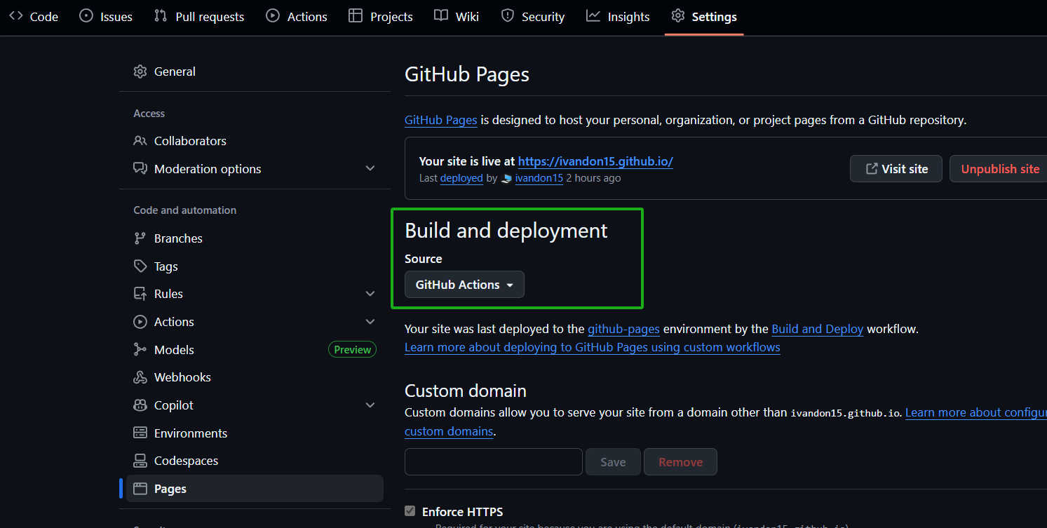 <username>.github.io。 - 在 GitHub Pages 的设置里切换到 GitHub Actions 部署。