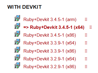 - 下载 RubyInstaller,安装时记得勾选 ridk install 并安装 MSYS2/MINGW 工具链。